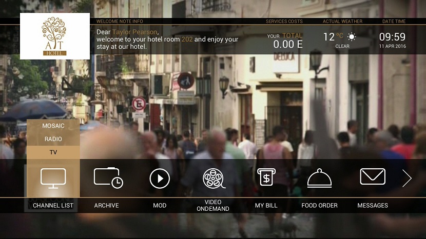 A hotel television signal encrypted with Pro:Idiom requires a HD TV that can decrypt that signal. LG, Samsung, Panasonic, Sharp, and Philips manufacture hospitality televisions that have an integrated Pro:Idiom chip to make that encrypted signal visible on the TV.. Pro:Idiom is widely used in hospitality environments and is quickly becoming a standard feature for hospitality televisions. ... Content Retrieval